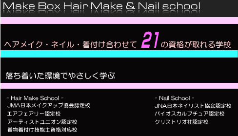 2004 アートメイク、動物メイク、外人メイクメイクボックス ヘアメイク&ネイル総合学院〒530-0012 大阪市北区芝田1丁目10−10 芝田グランドビル9F 06-6292-5511 info@makebox.com |
