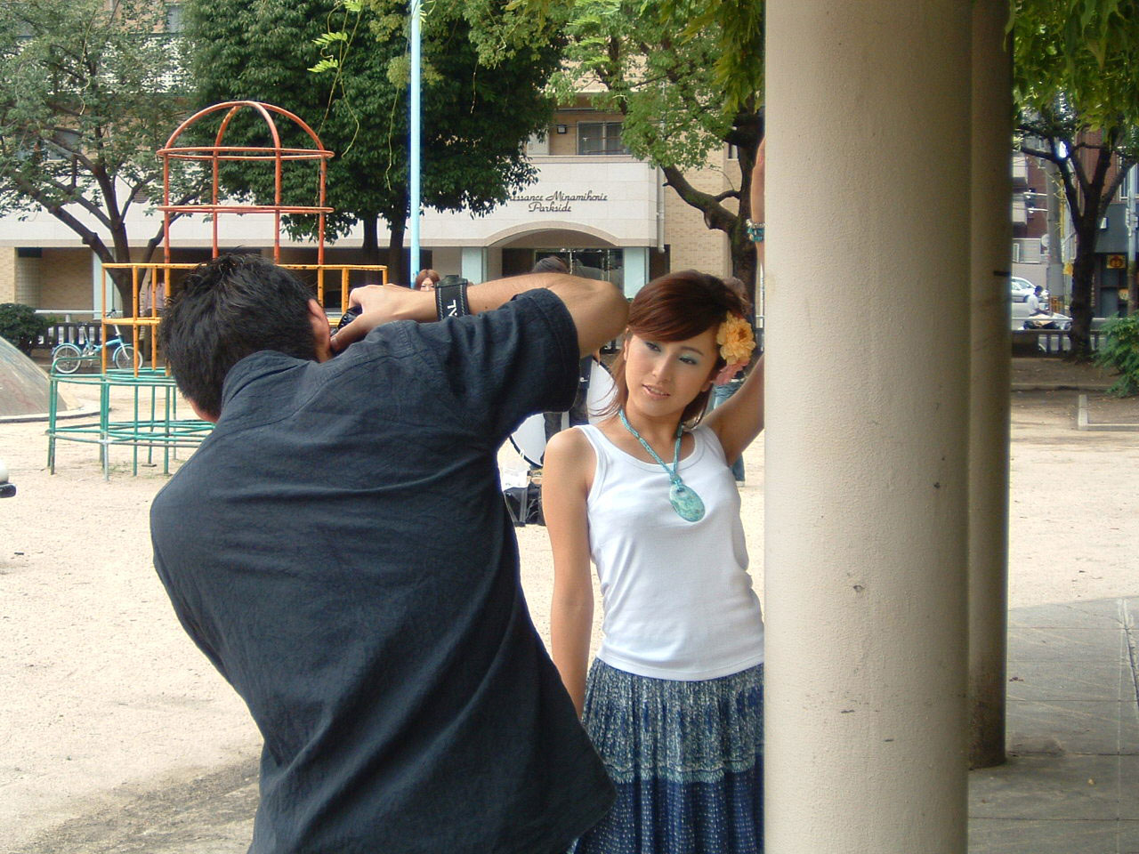 | 今年は、この作品がサマーコンテストの出品作になるため、いつになく映像生たちも緊張気味。 7月5日にロケーション合同撮影授業が日本写真映像専門学校の生徒たちと行われました。 この日は、ずっと雨が続いていた中撮影中だけ晴れ間が続き、無事撮影が終了しました。 誰かの日ごろの行いが良かったのかも!! 公園、路上とロケーションを探して打ち合わせ。写真学校の生徒たちのクルーと撮影隊を組み出陣していきました。! |